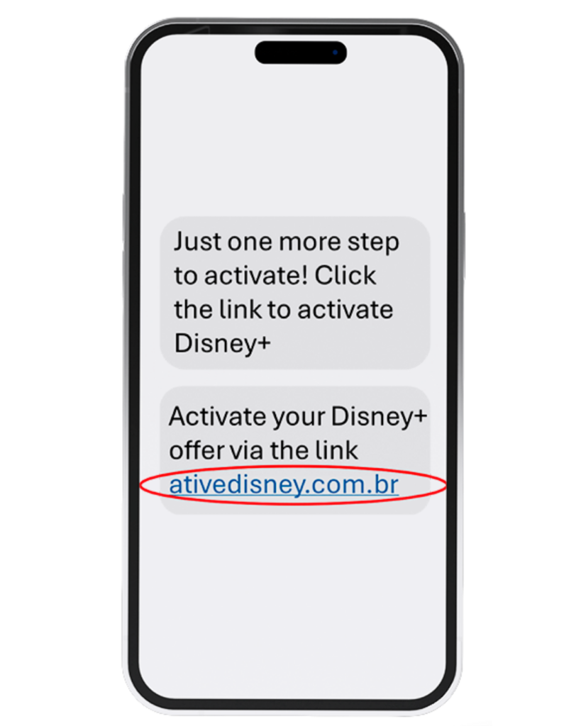 Para ativar o Disney+, clique no link de ativação recebido por SMS: