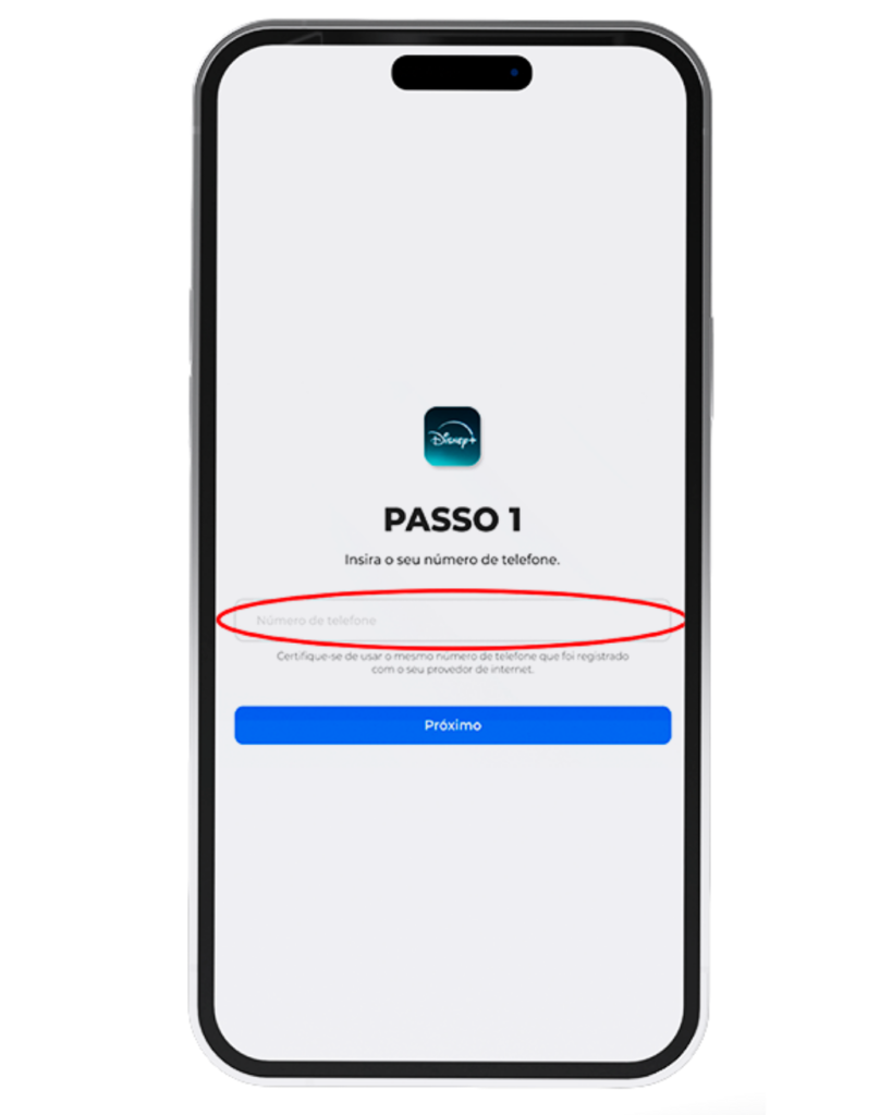 Insira seu número de telefone no local indicado.