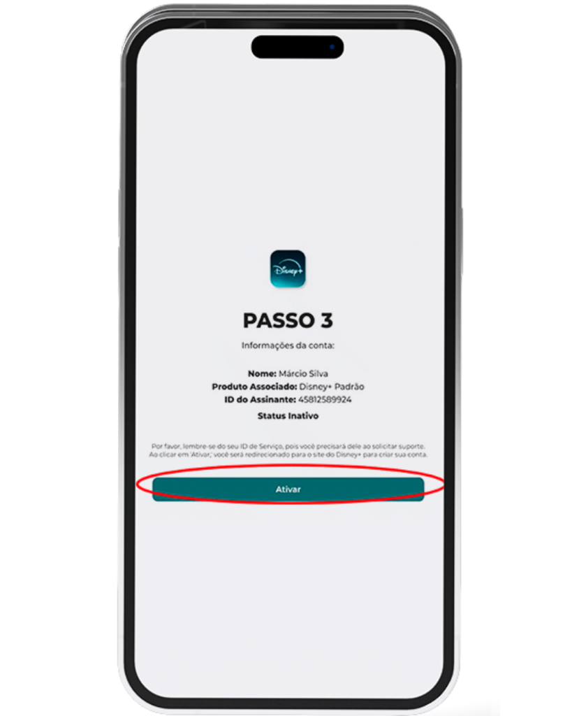para ativação do Disney+.