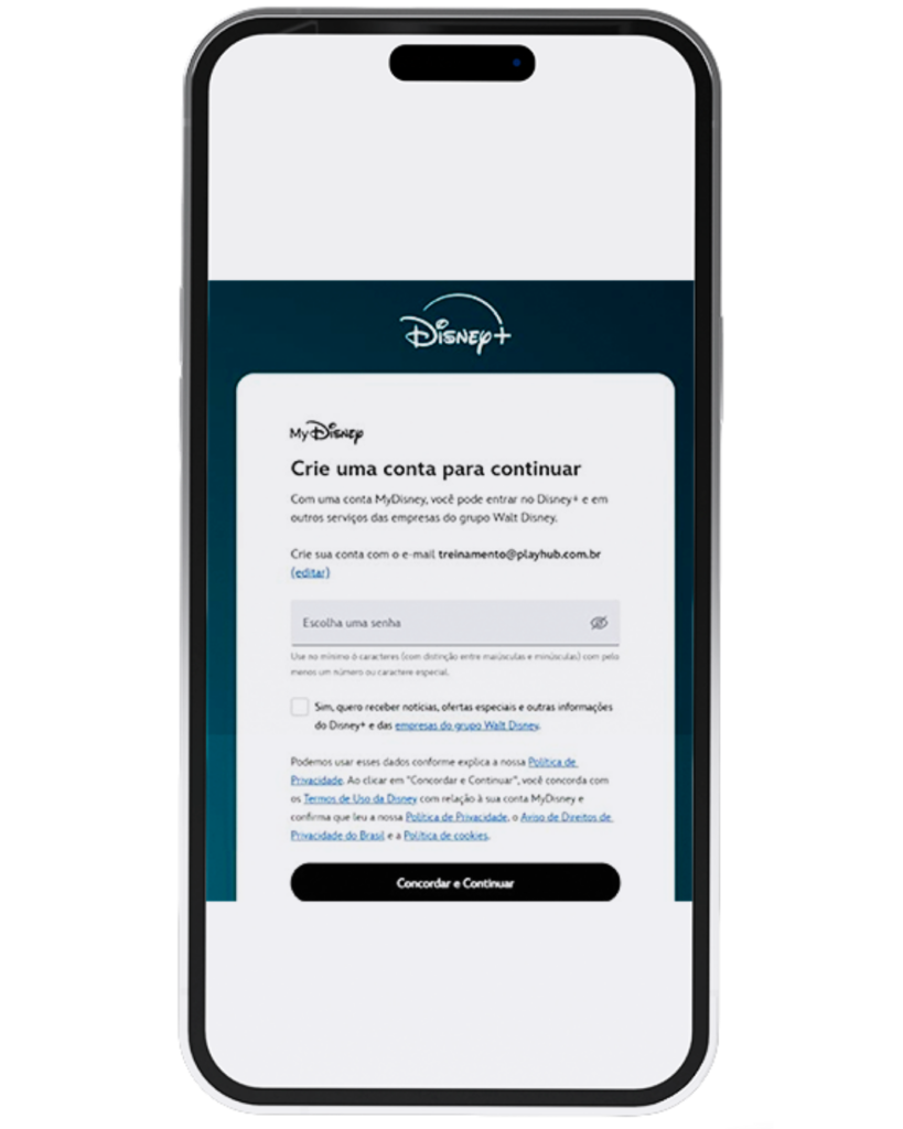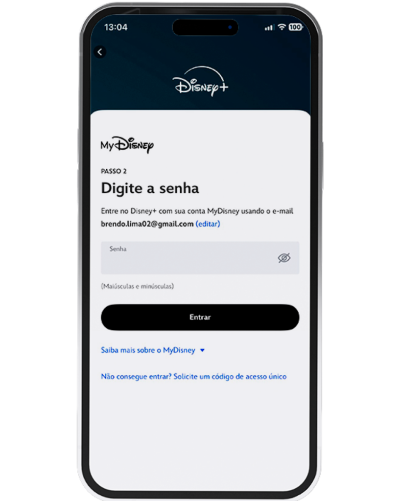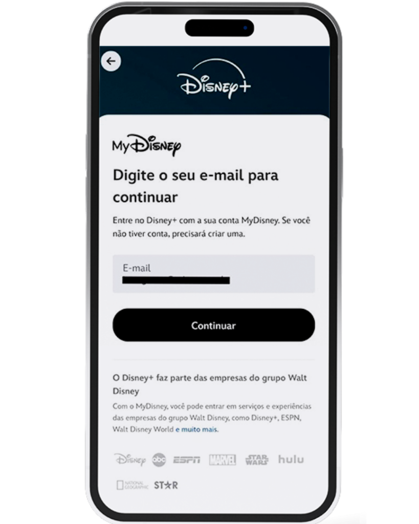 Ao ser redirecionado para o Disney+, insira o